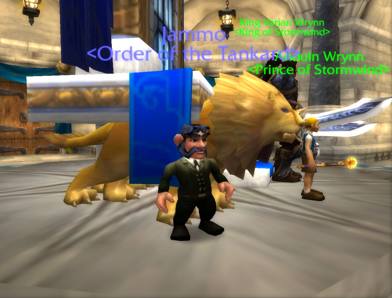And so, Jammo approached Kaigan Irongut, the Brewmaster of the Order and asked to join the guild. Kaigan, who was eager to boost the numbers of the guild, quickly agreed and initiated him into the guild. One day, several weeks after his initiation, Jammo learned of a secret meeting between the highest ranking members of the guild, the Kegmeisters. He snuck into the then guild headquarters, "The Pig n' Whistle" tavern in Old Town district of Stormwind, and spied upon the leaders. It was only by chance, that one of the Kegmeisters, Bellatrixee, arrived late, and as she was walking in to the tavern, noticed the small hunched figure. Using her race's natural ability to meld into the shadows, she snuck up to Jammo and surprised him by wrapping roots around him. Leaving him in nature's unrelenting grasp, she joined the meeting. Afterwards, she brough Jammo before Kaigan and Wysen. Under the scrutiny and powers arrayed against him, Jammo was forced to relay everything to them. The next day, Kaigan had a meeting with Matthias Shaw.